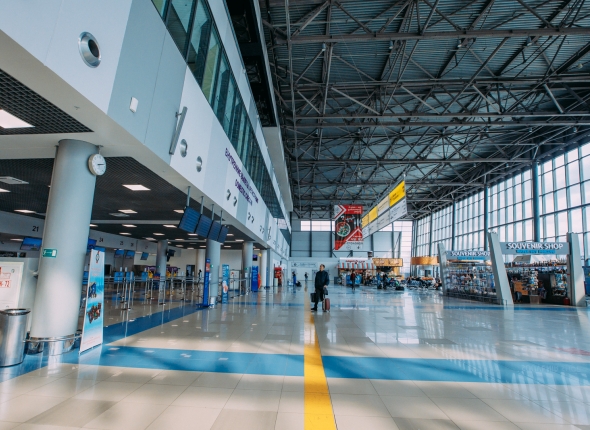 Службы аэропорта расчищают снег и обрабатывают взлетно-посадочную полосу, перрон, рулежные дорожки и привокзальную площадь.