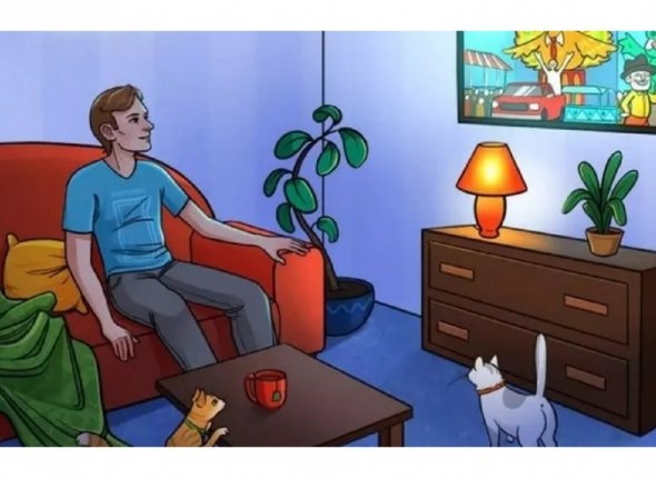 Перед вами изображение мужчины, просматривающего телевизионную передачу. На первый взгляд, сцена выглядит вполне обыденной. Тем не менее, на изображении присутствует одна неточность. Попробуйте обнаружить ее в течение 15 секунд.