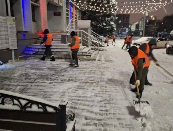 Параллельно ведётся очистка пешеходных зон: тротуаров, остановок, переходов и территорий возле школ, больниц и детских садов. Днём к работе привлекут более 620 человек и 29 единиц техники.