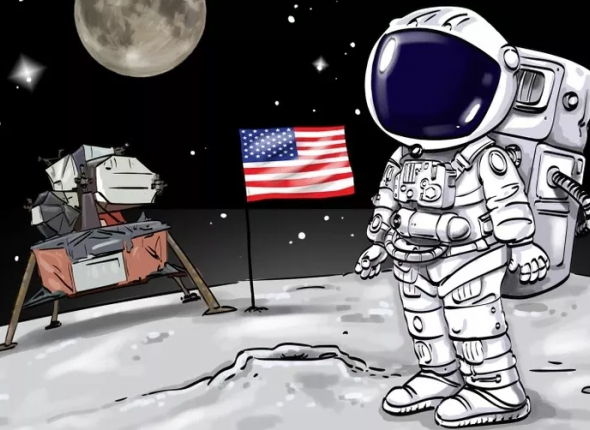 Ниже представлен ответ для тех, кто не смог обнаружить аномалию. На чём стоит астронавт? Очевидно, это момент покорения Луны — он находится непосредственно на её поверхности. Однако, как видно, на горизонте присутствует вторая Луна, что, безусловно, невозможно.