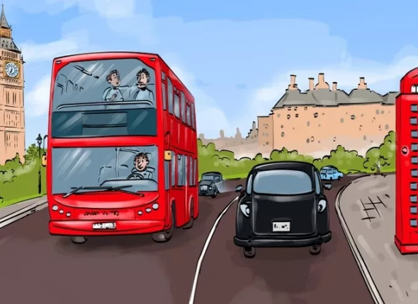 Для тех, кто не смог обнаружить ошибку, ответ представлен ниже. Обратите внимание на достопримечательности: судя по изображению знаменитой часовой башни Биг-Бен и красного двухэтажного автобуса, на иллюстрации представлен Лондон. И правила движения в нем отличаются от российских. В частности, транспорт в Великобритании движется по левой стороне дороги. В этом и кроется ошибка художника.
