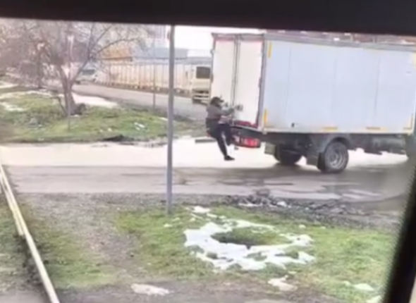 Мальчишки цеплялись за задние части ехавших авто и трамвая (ВИДЕО)