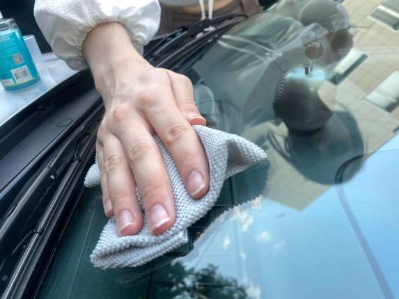Распылите выбранное средство на стекло небольшими порциями, чтобы избежать сильных потёков. Подождите несколько секунд, чтобы состав растворил грязь. Круговыми движениями тщательно протрите всю поверхность чистой микрофиброй. При необходимости процедуру можно повторить на особо загрязнённых участках.