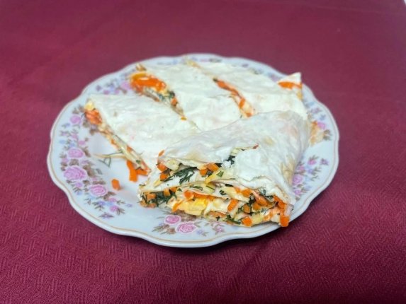 В этом рецепте сочетается нежность копченой курицы, пикантность корейской моркови, сливочность плавленого сыра и свежесть огурца. Получается идеальная начинка, которая отлично дополняет тонкий лаваш.