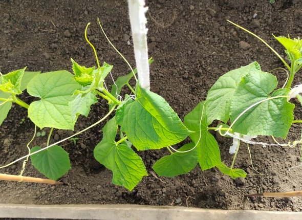 Этот пчелоопыляемый гибрид формирует мощные кусты с плетями до полутора метров в длину. Боковое ветвление умеренное, а цветение преимущественно женское, что обещает обилие завязей. В каждой пазухе листа образуется по три будущих огурчика.