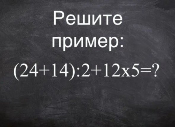 Попробуйте решить пример в уме, не записывая и не заглядывая в телефон: (24 + 14) : 2 + 12 × 5 = ?