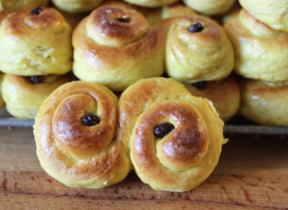 KrasnodarMedia, 6 марта 2020. В Швеции часто готовят булочки "Глаза Святой Лючии". История рецепта связана со Святой Луцией или Лючией Сиракузской, которая является покровительницей слепых. Приготовление булочек занимает немного времени, под силу домашнему повару любого уровня, а на вкус они получаются восхитительными и нежными. Предлагаем порадовать себя и своих домашних выпечкой по старинному рецепту от ИА KrasnodarMedia.